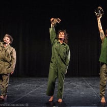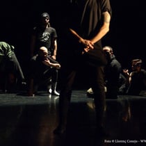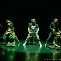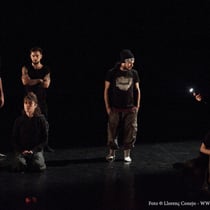 SINESTÈSIA "representa un món post-apocalíptic, on a través de la dansa experimental es forma un grup de supervivents i aquest inicia un viatge cap a una zona segura. El Hip Hop, la acrobàcia i la dansa contemporània es fusionen per crear un llenguatge on el humà i l'animal s'uneixen, convidant l'espectador a un joc d'interferències sensorials.